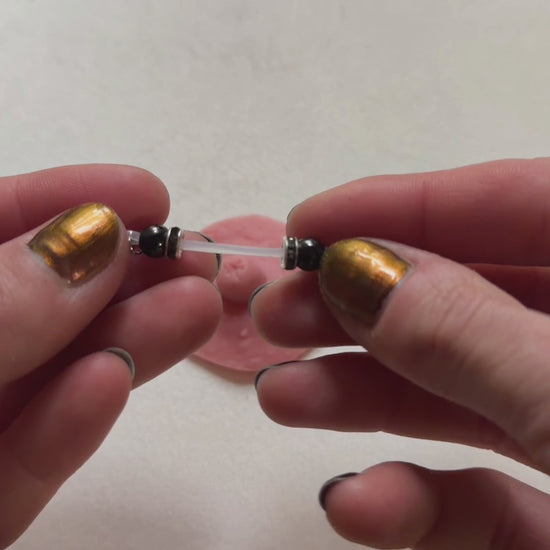 Barbell Nipple Rings with Black Beads and Roundel / Faux Nipple Piercing