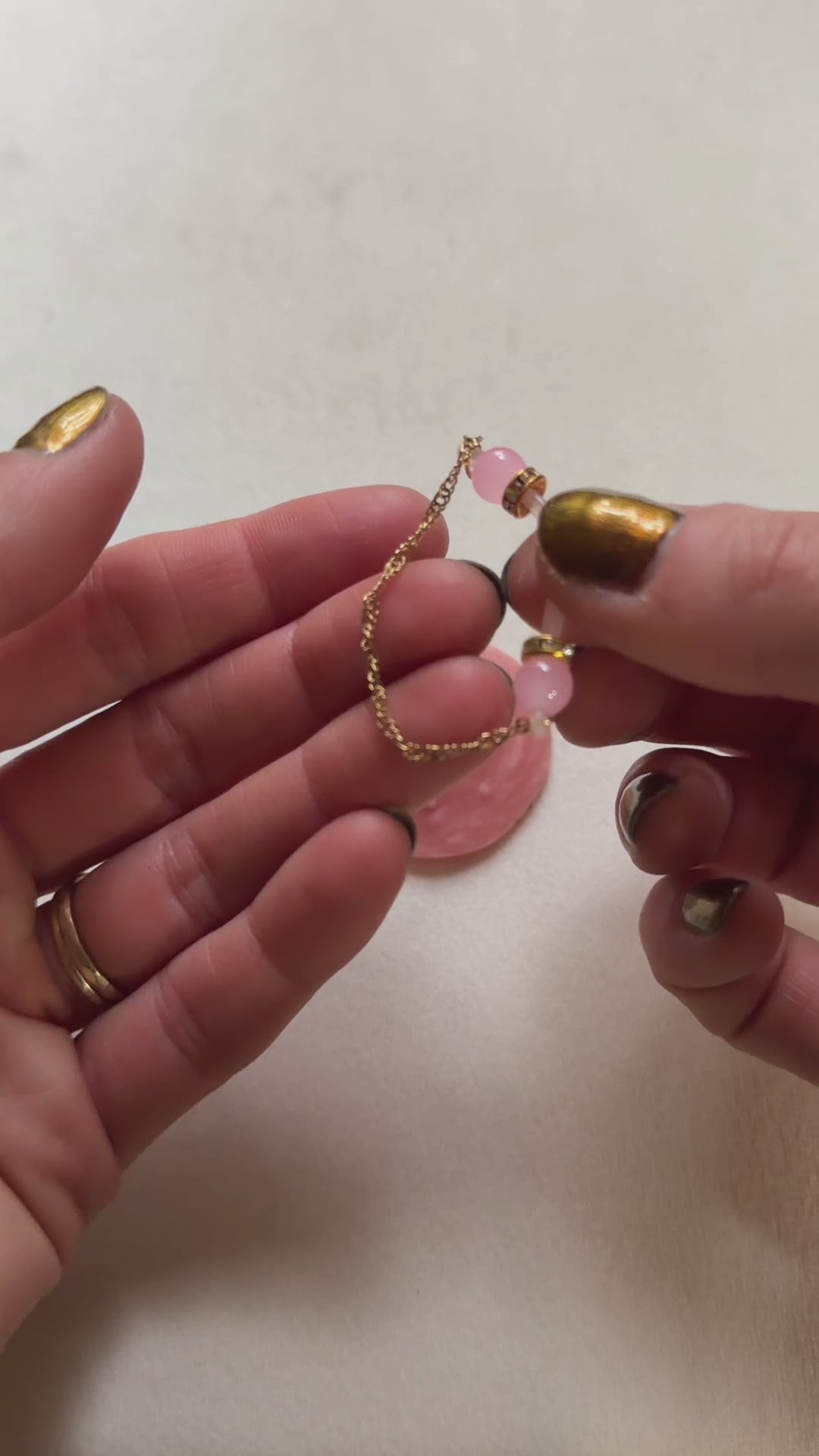 The little metal jump rings I use are all stainless steel with either a platinum or an 18k gold plating.