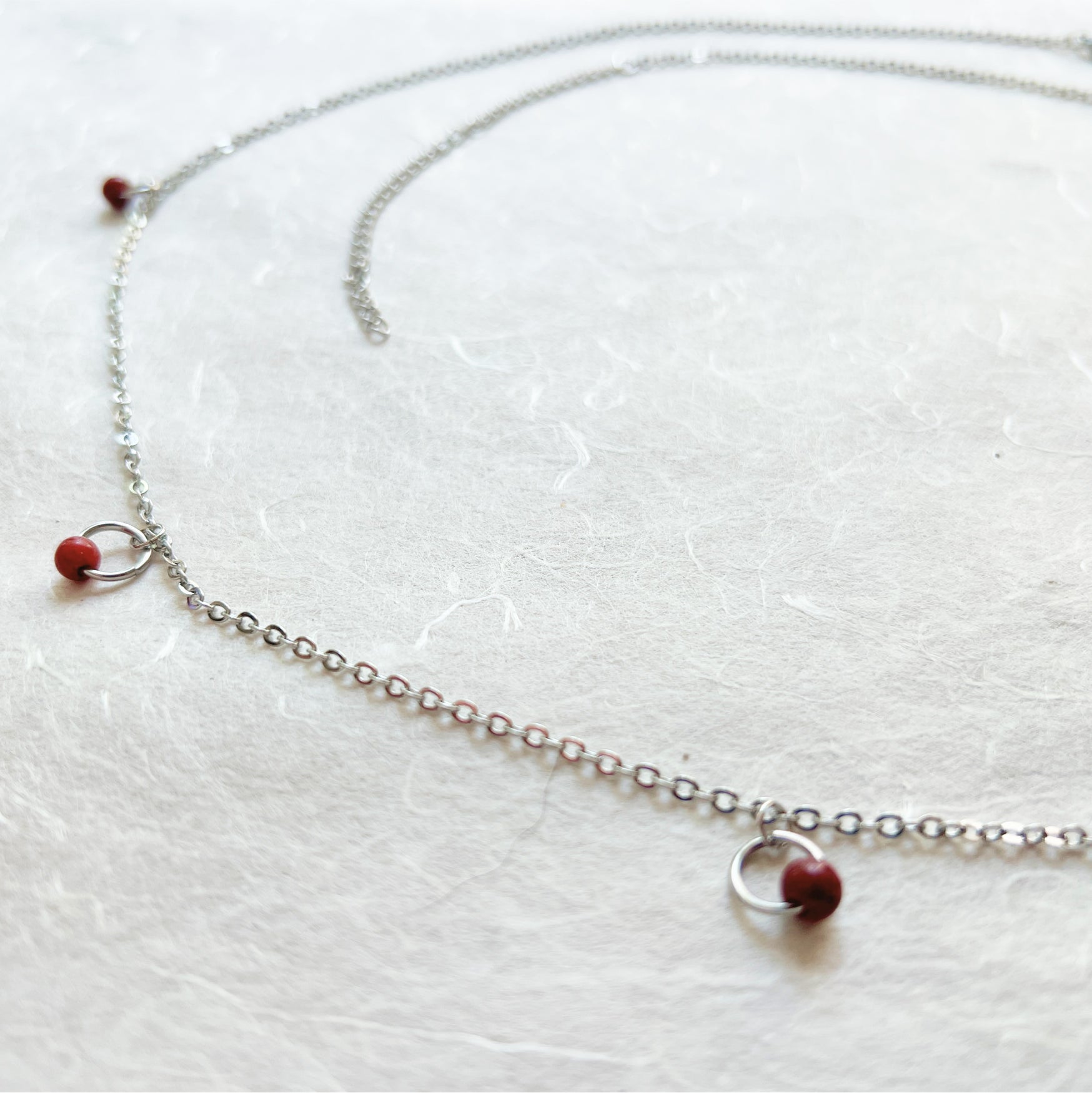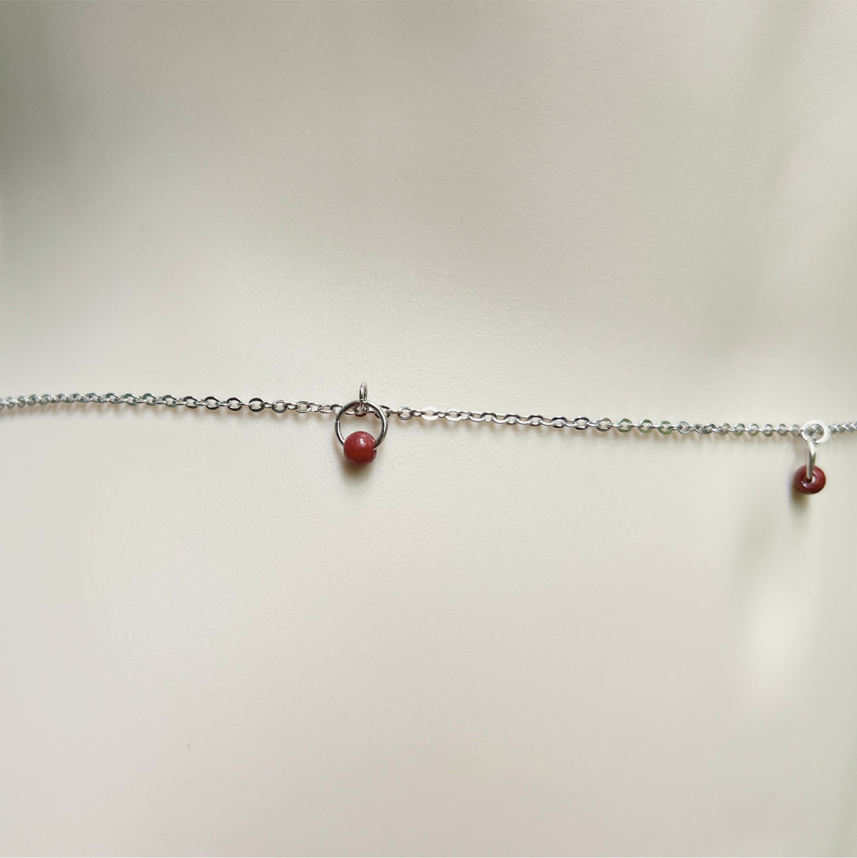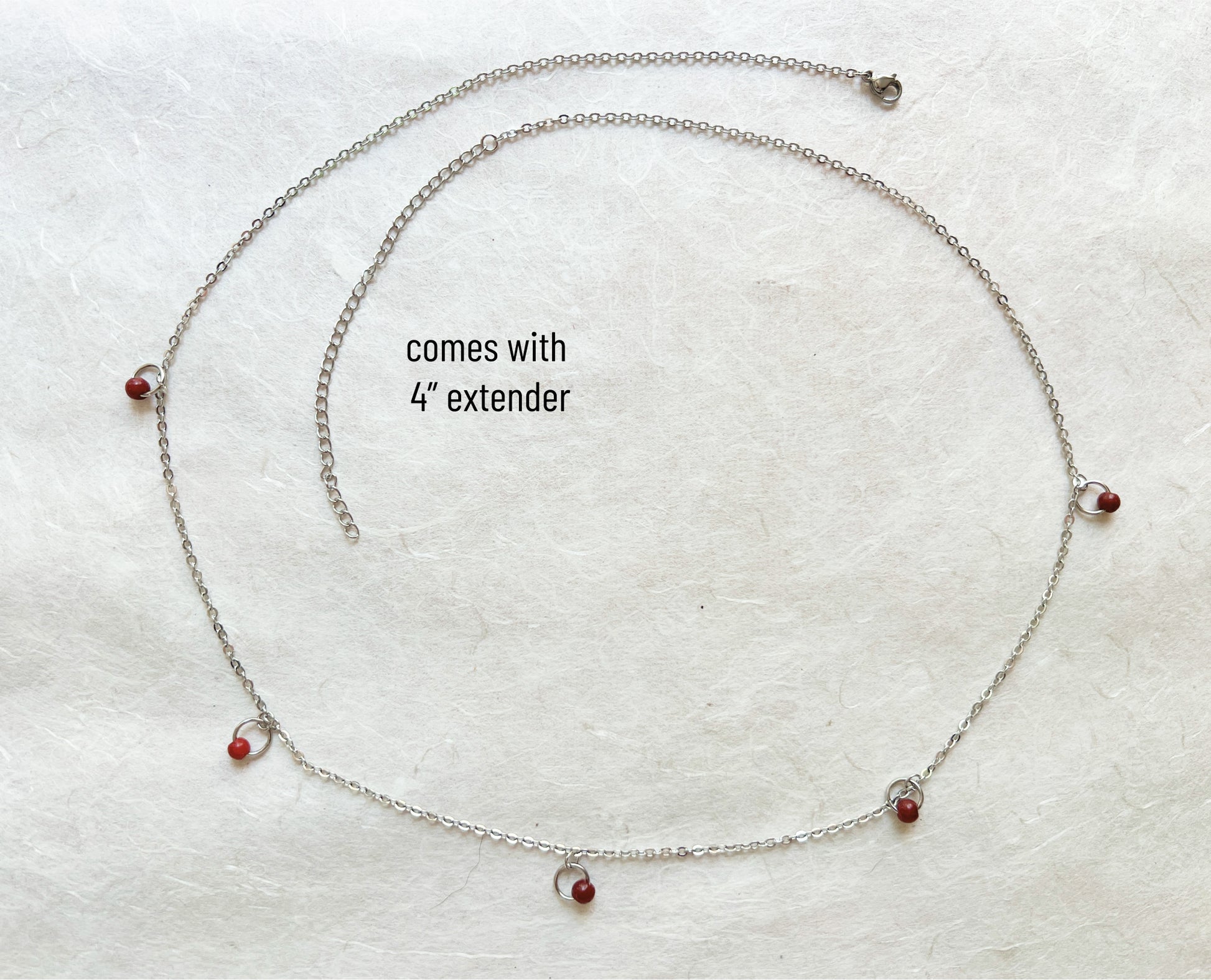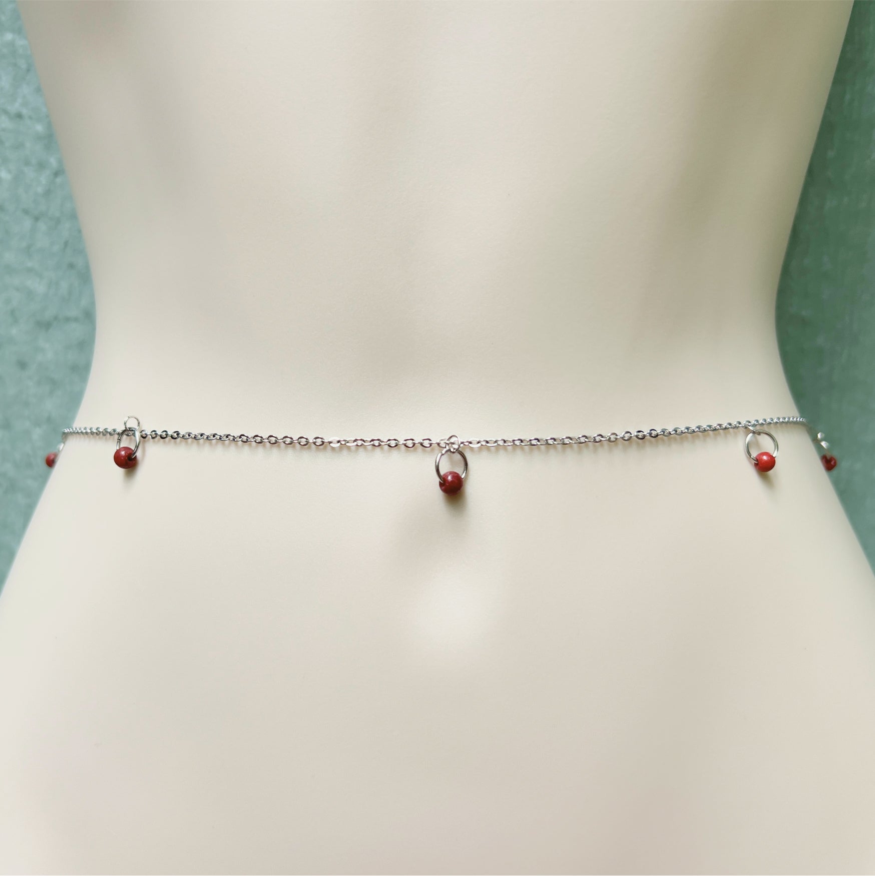 Dainty beaded belly chain adorned with little red natural stones* by Secretly Mine. Available in 18k gold plated or pure stainless steel - guaranteed waterproof and tarnish resistant.