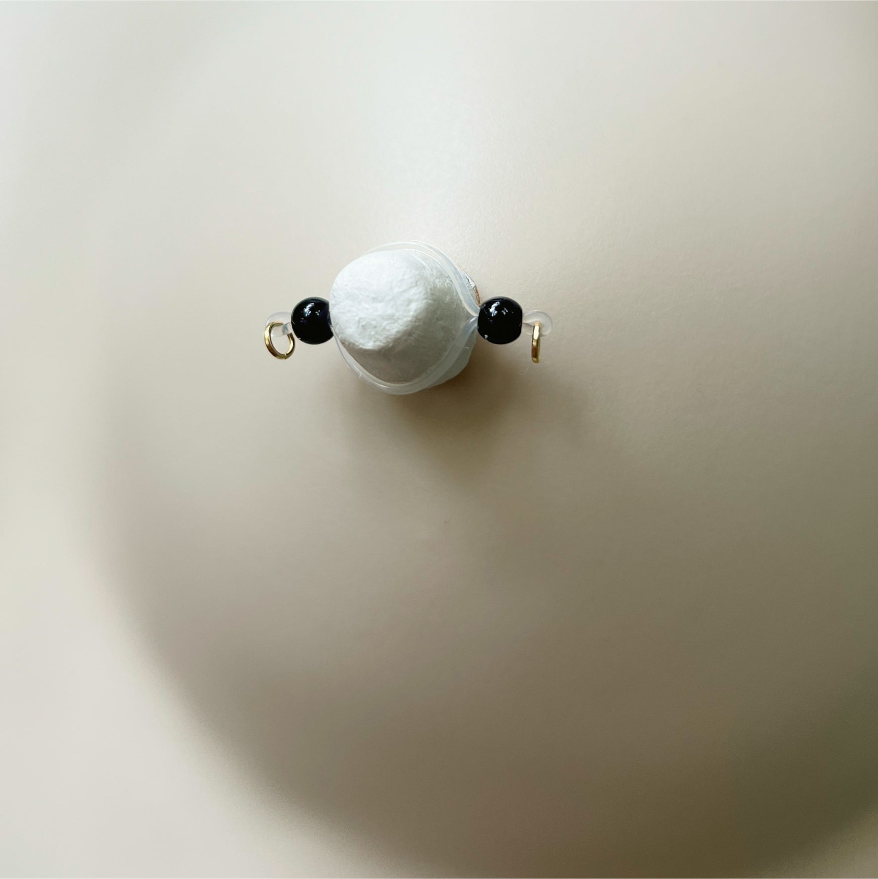 The classic barbell style fake nipple piercing with smooth and genuine black onyx or black obsidian beads. They are 4mm, so on the smaller side.