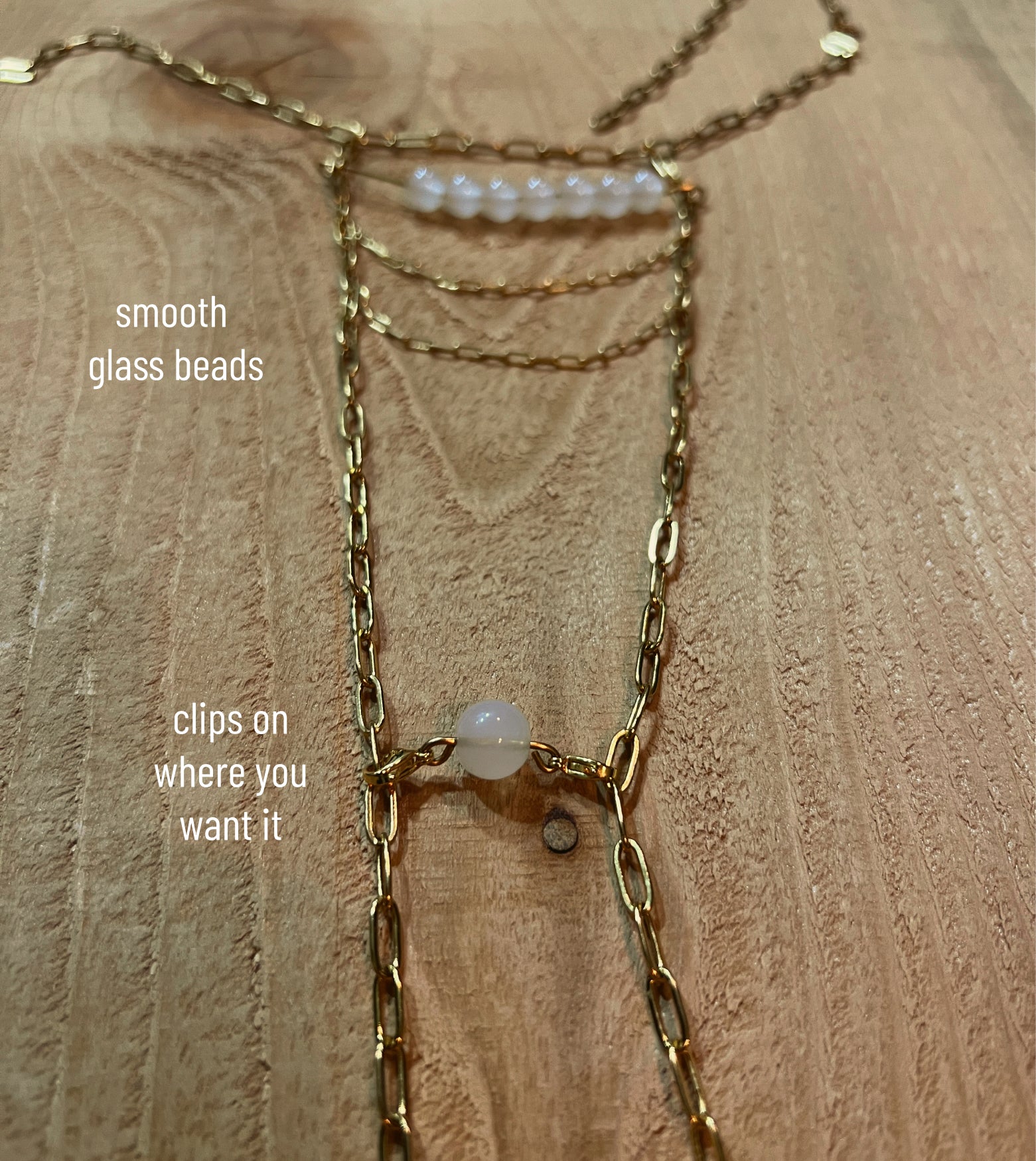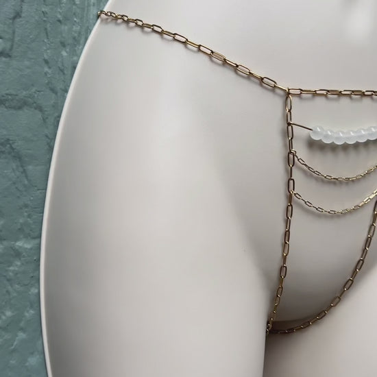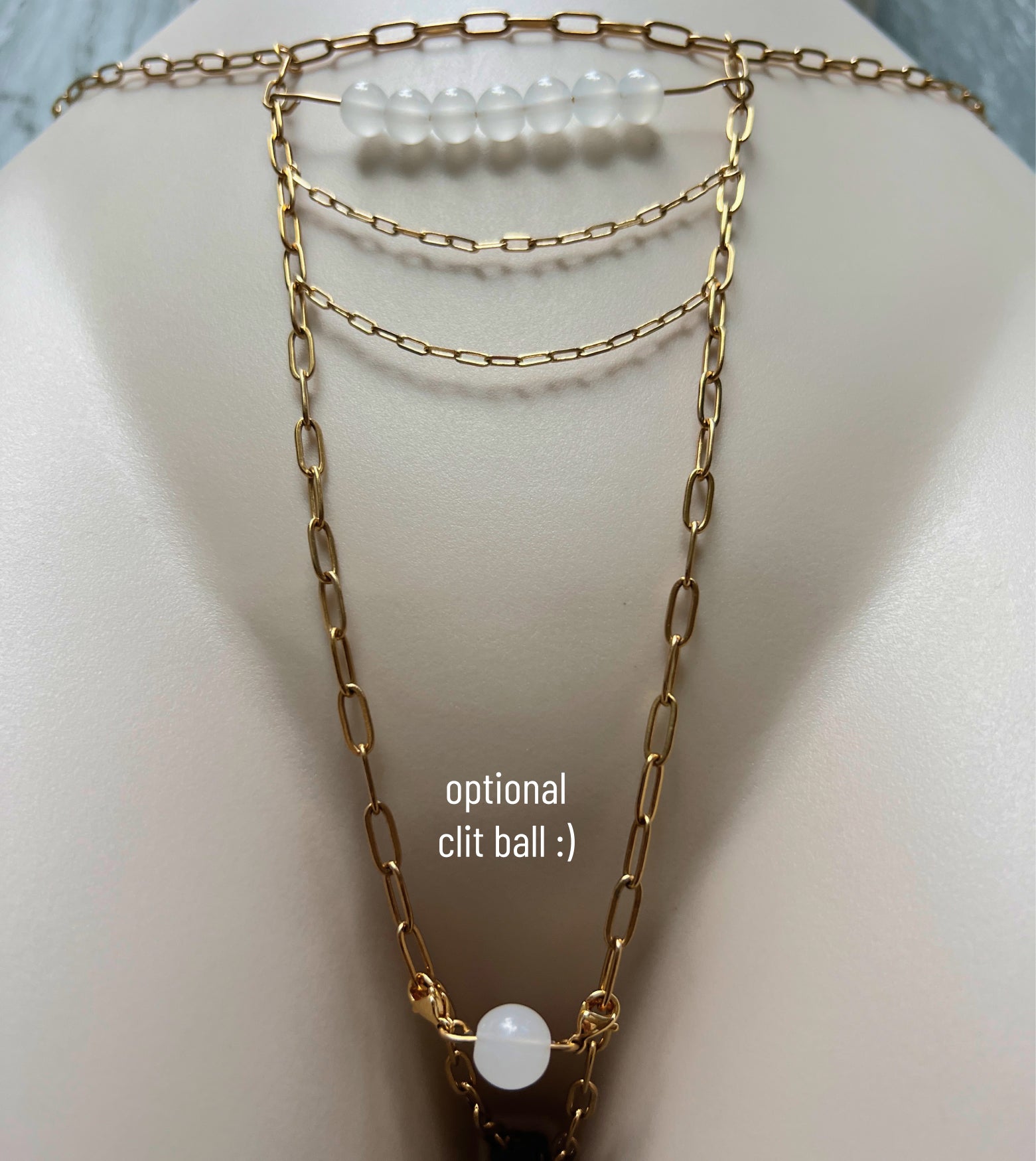 Super sexy crotchless chain thong with dangling chains and smooth glass beads. Your ultimate chain panties for your kinky nights!