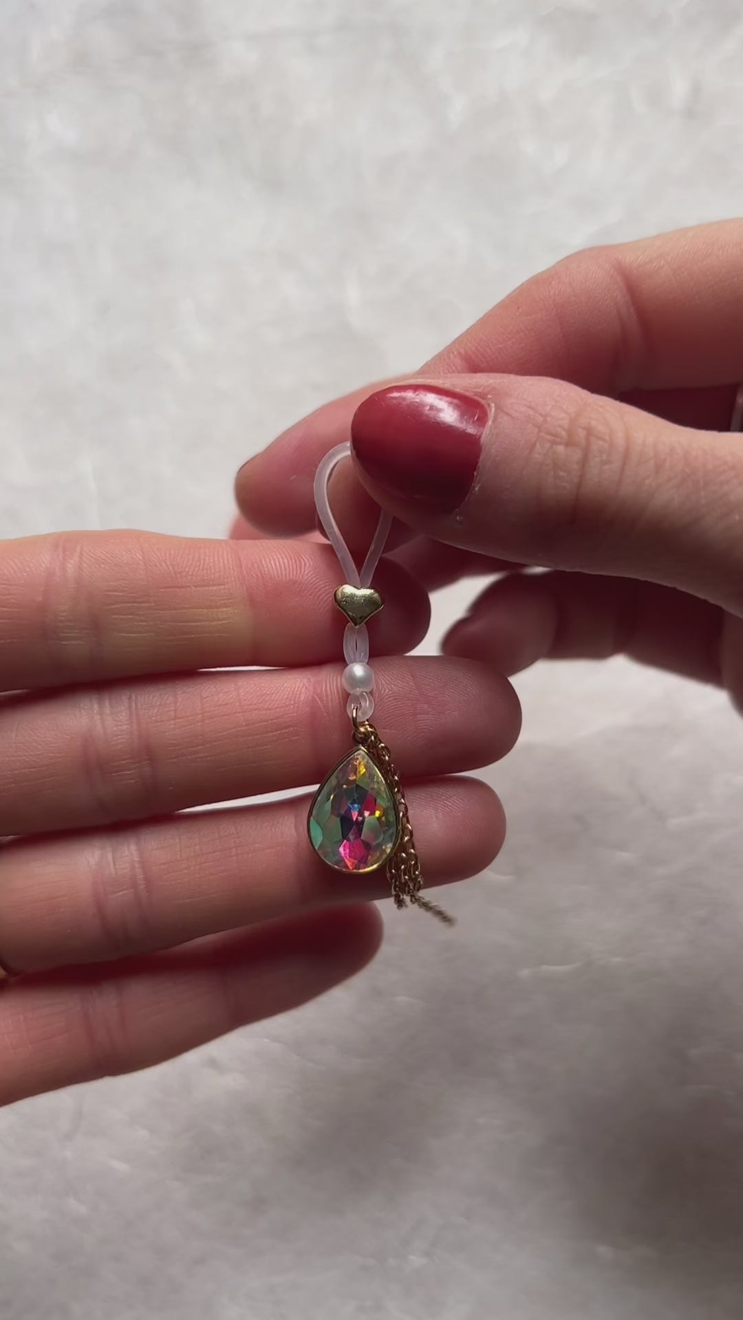 The chains and metal beads are made out of stainless steel with PVD gold coating. The little metal jump rings I use are all stainless steel with either a platinum or an 18k gold plating.