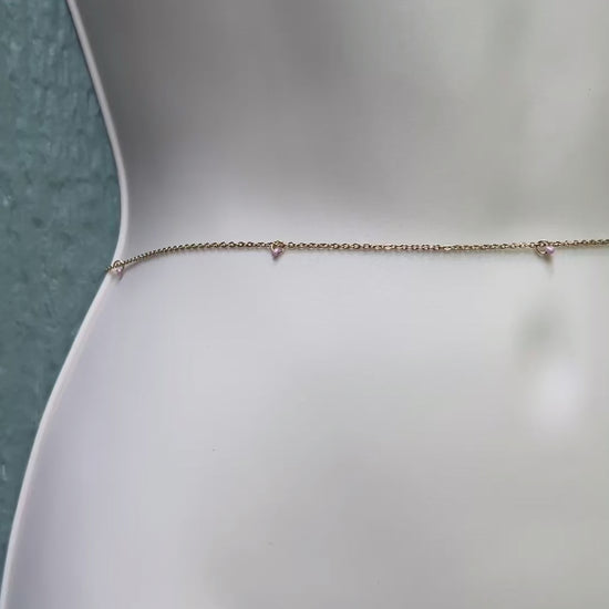 Dainty and delicate belly chain with tiny little lavender colored beads by Secretly Mine. Available in PVD gold plated or pure stainless steel - guaranteed waterproof and tarnish resistant.