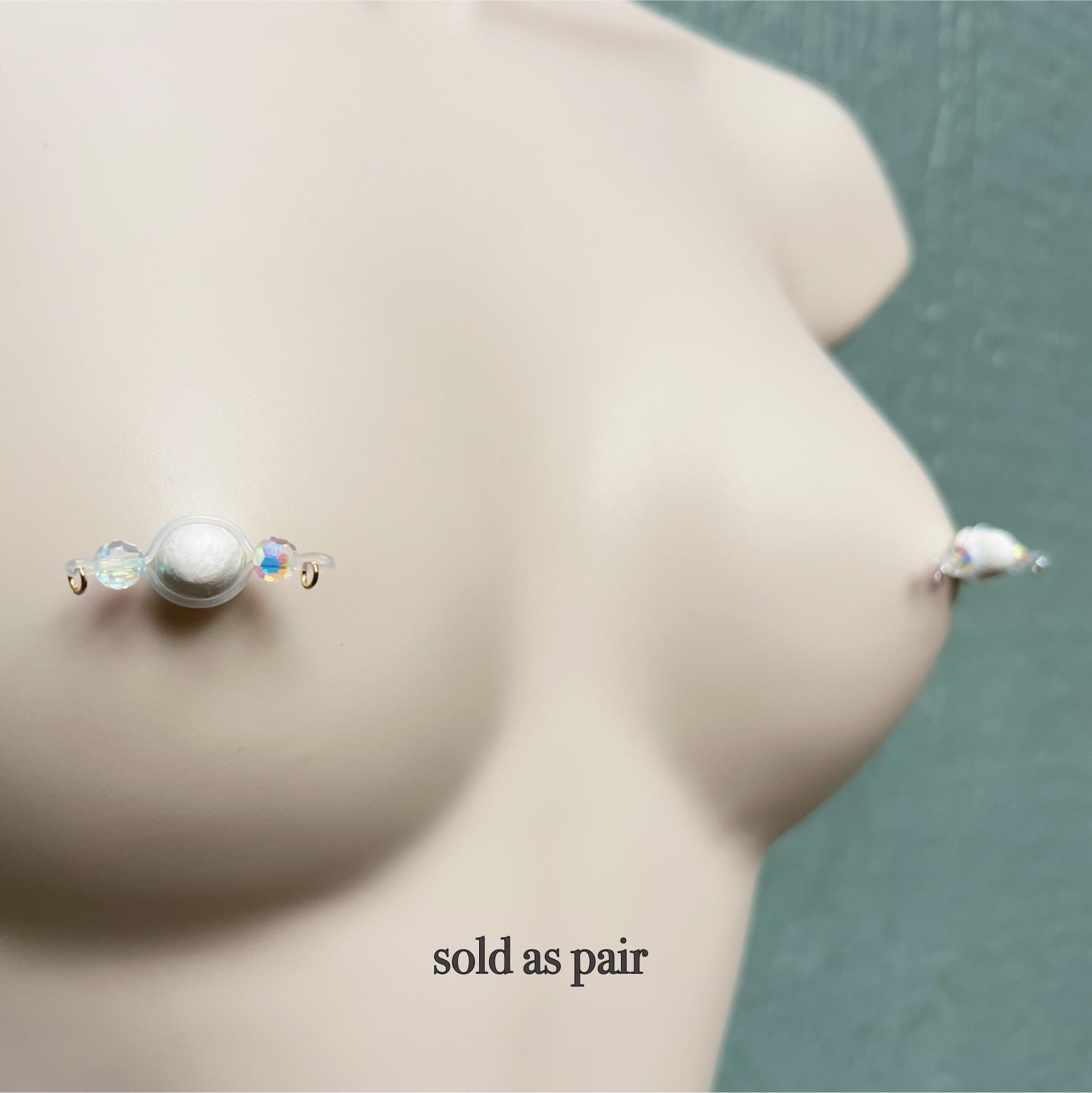 A pair of non piercing nipple jewelry with beautiful sparkly faceted glass beads by Secretly Mine.