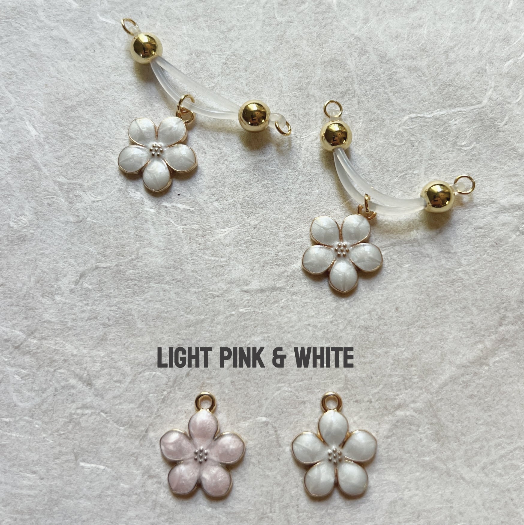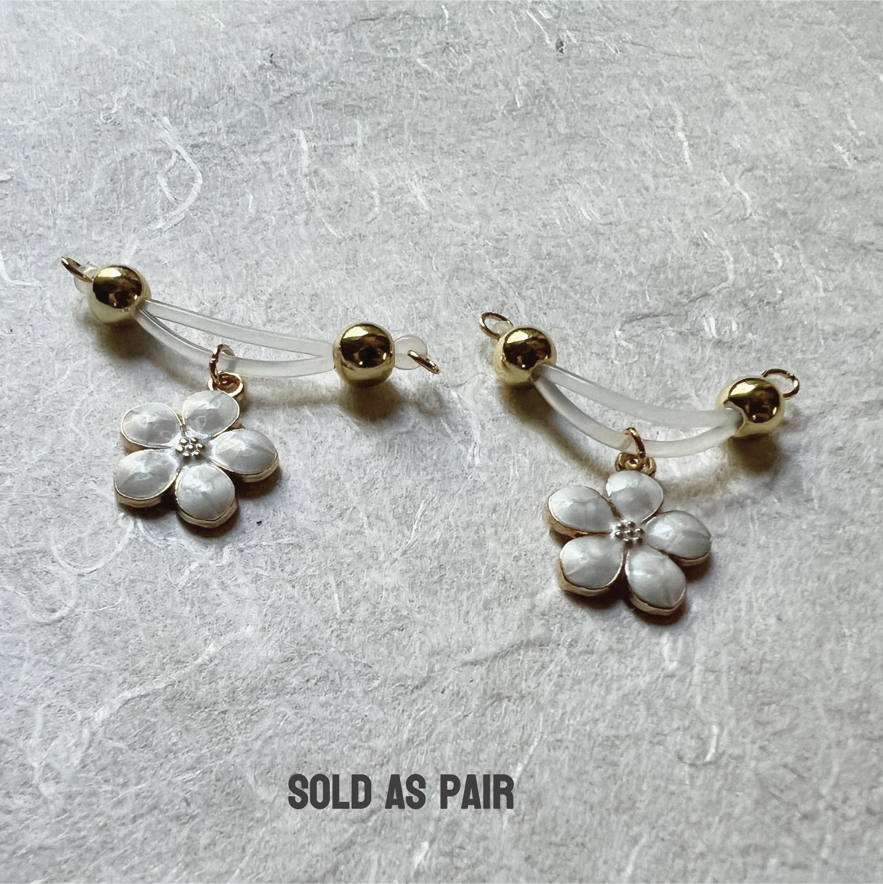A pair of non-piercing nipple jewelry (barbell style) with dainty and super cute cherry blossom charms - in light pink or white. Handmade, from Secretly Mine.