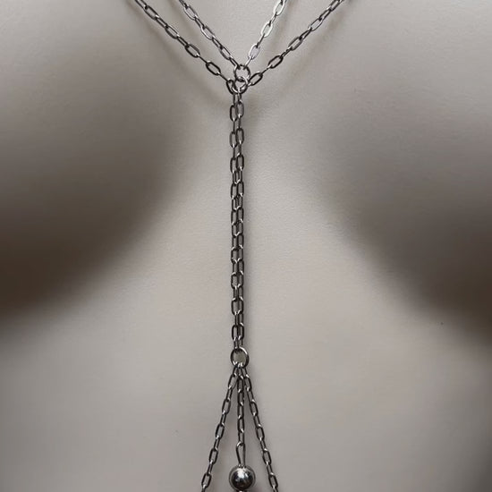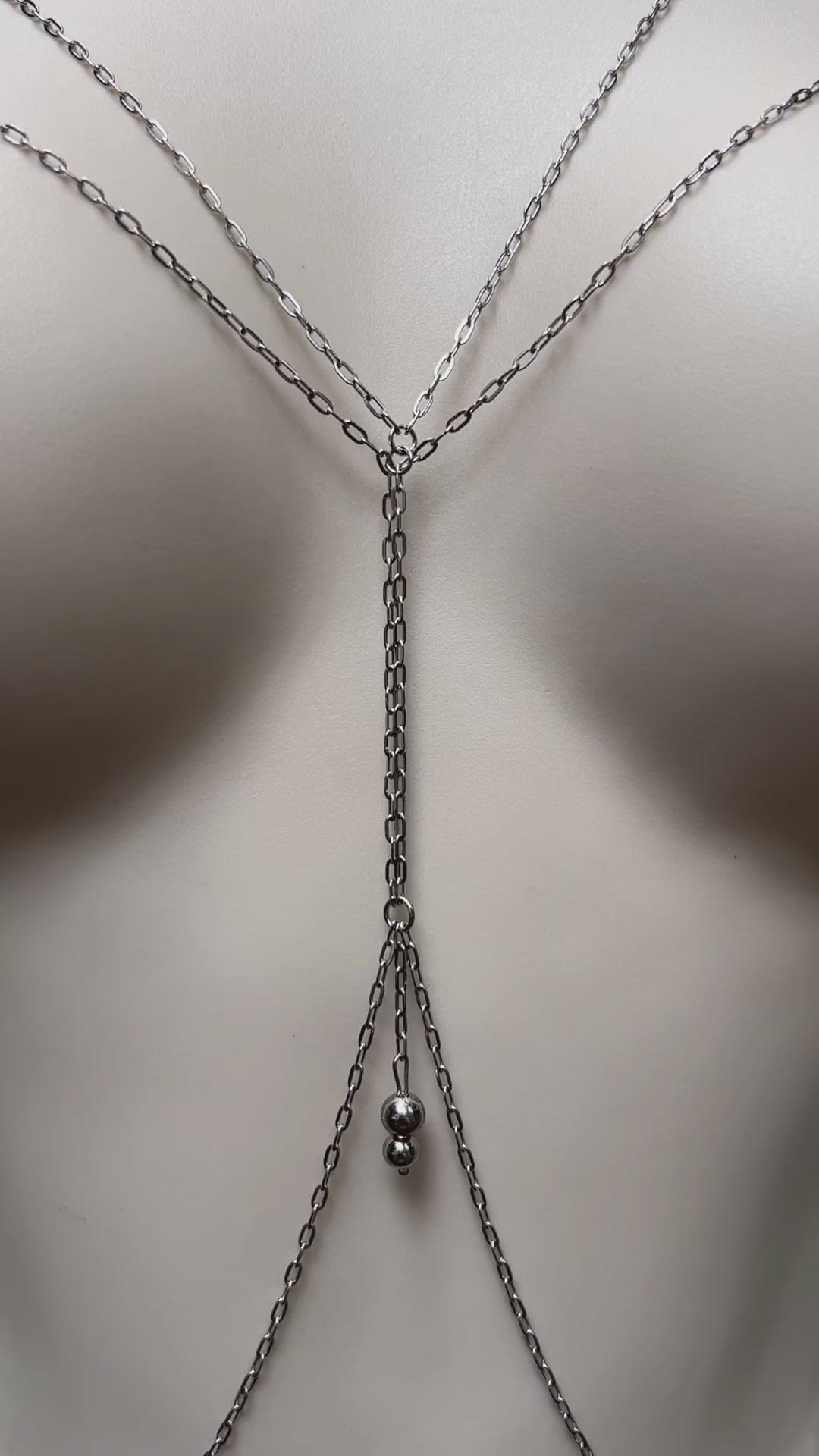 Beautiful and intricate chain bralette with layered chains, clasp in neck & back and dangling beads. Great to wear bare for intimate occasions, under a low cleavage dress or over a bra/top/bikini (as it is fully waterproof). There are so many possibilities... A great birthday or anniversary gift, or for yourself, to adorn, adore and be adored. :)