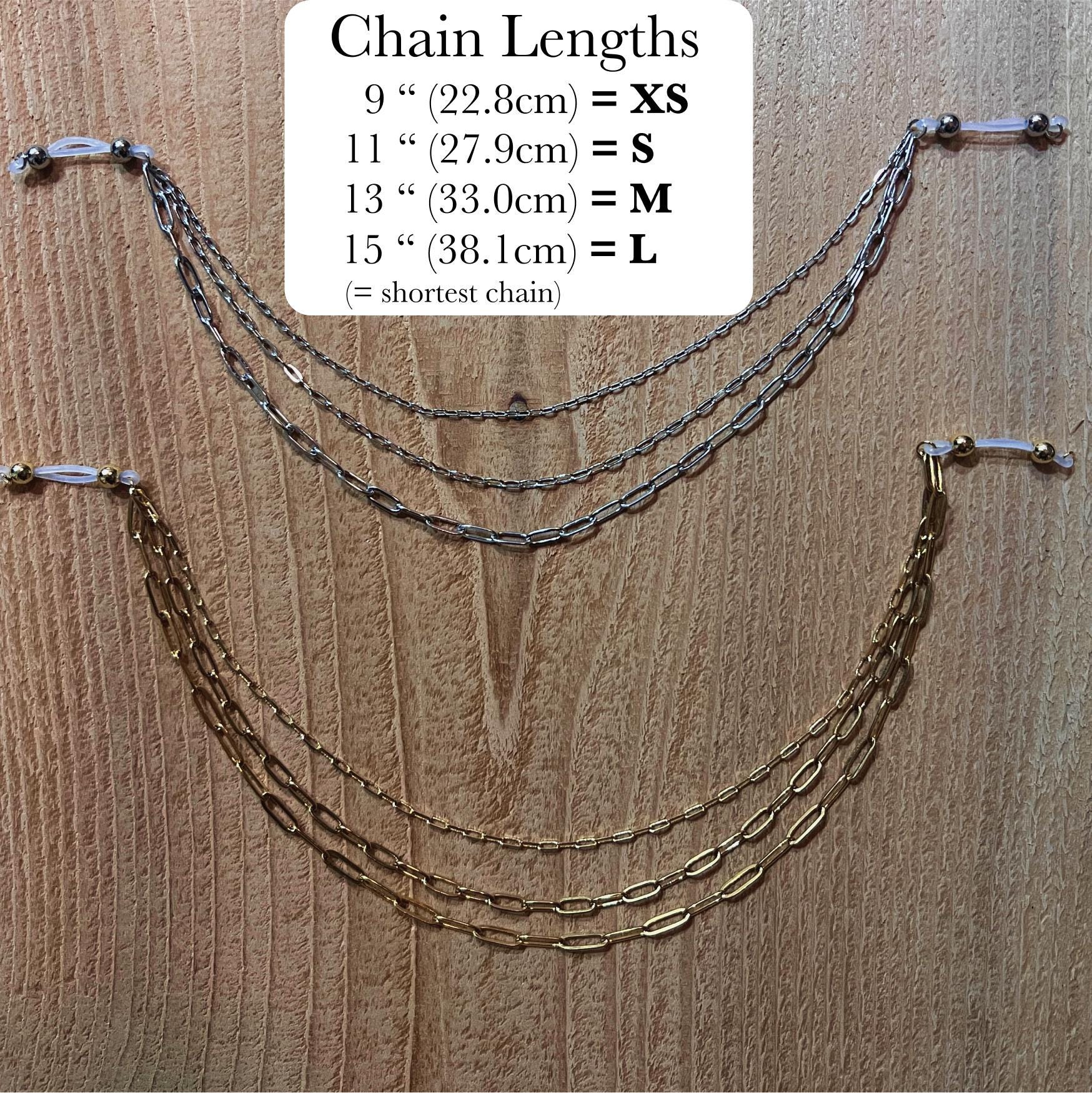 If you want the chain to not hang low, please measure the distance between your nipples and order the nearest size: