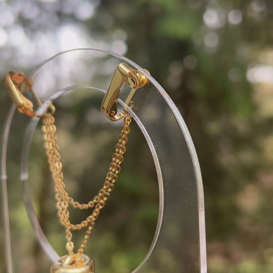 Sexy labia clip dangle with gold chains and a big jingle bell