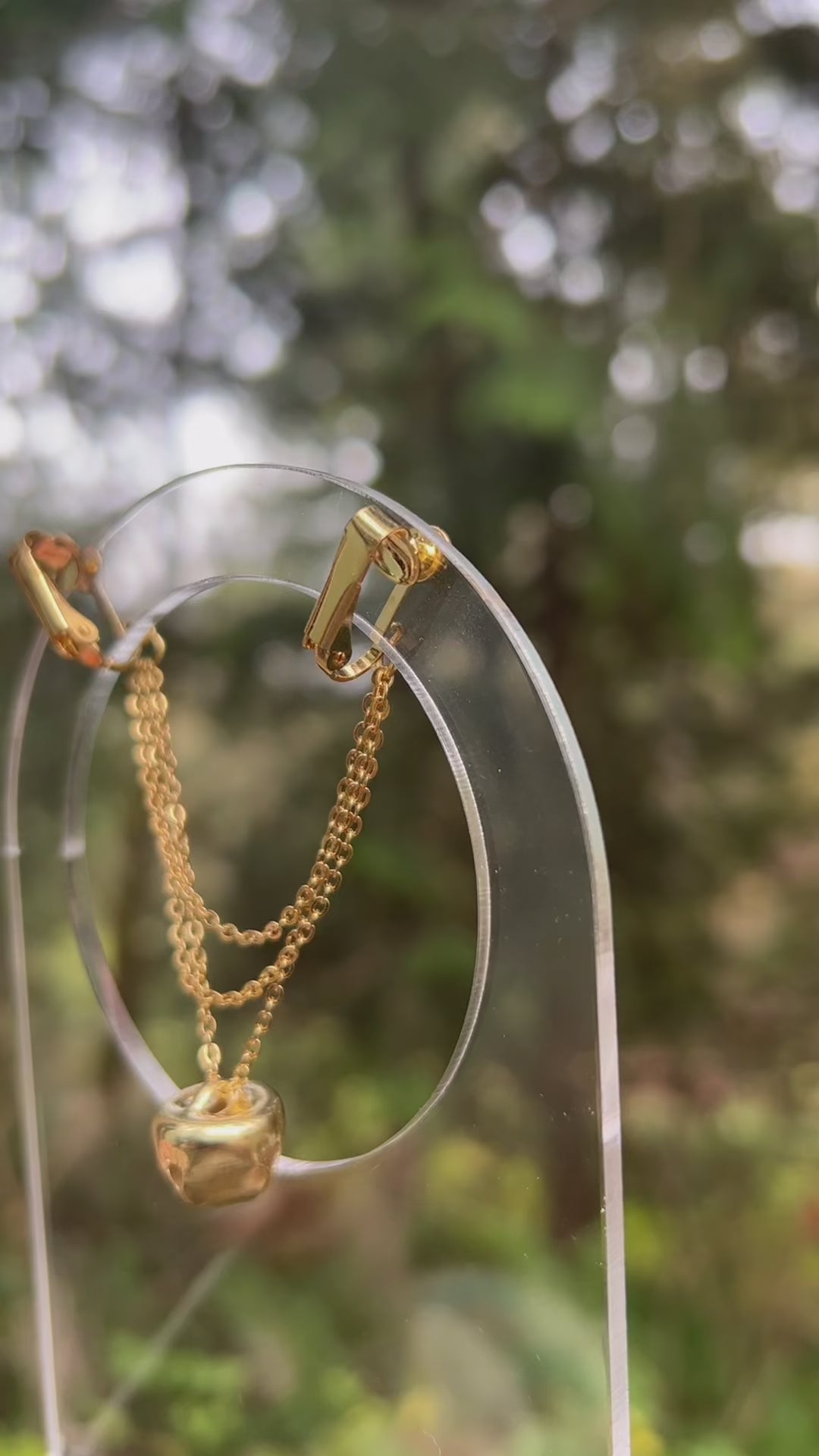 The clasps attach painless to the lips while the jingle bell and chains dangle and jingle nicely in between.