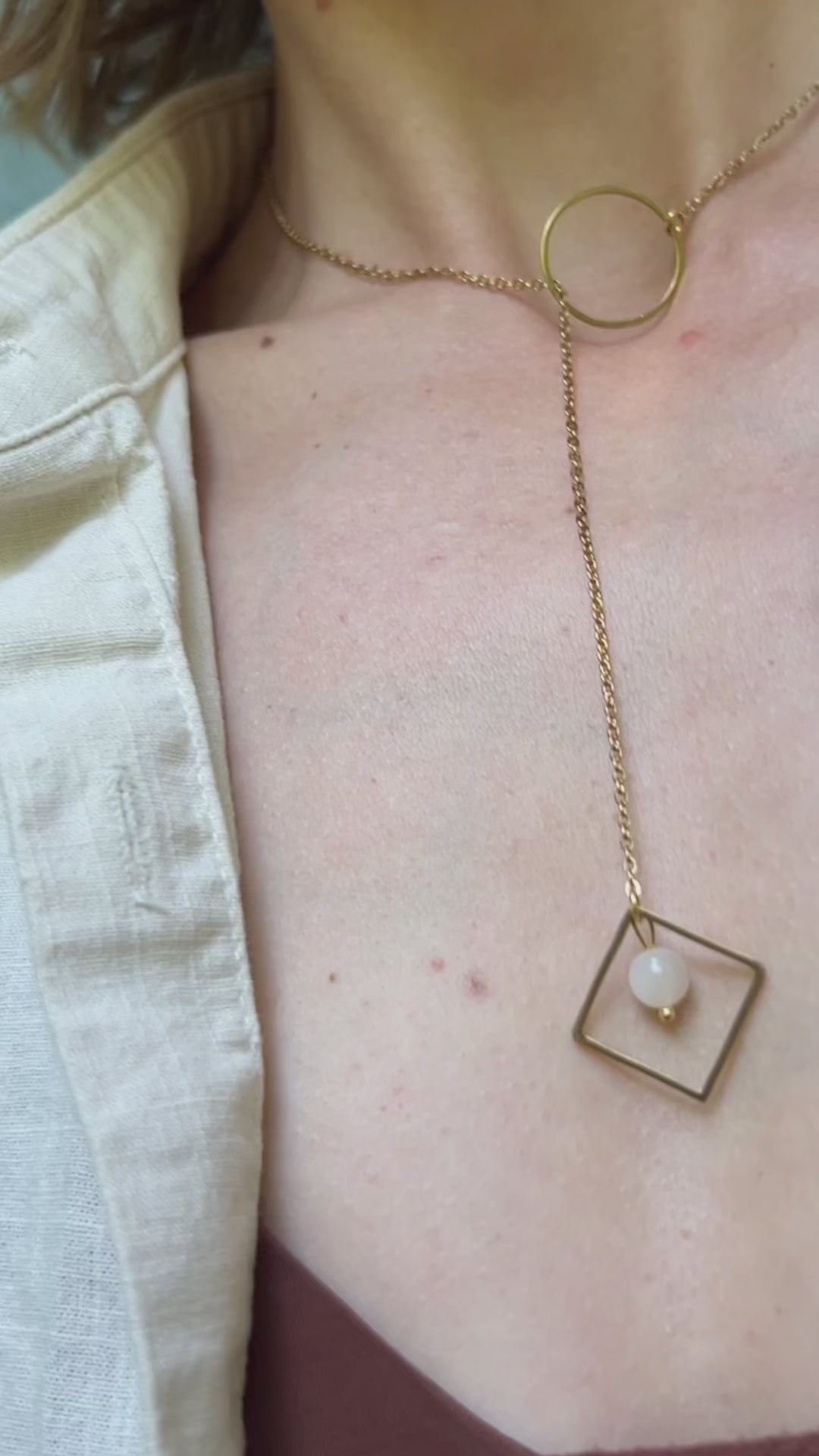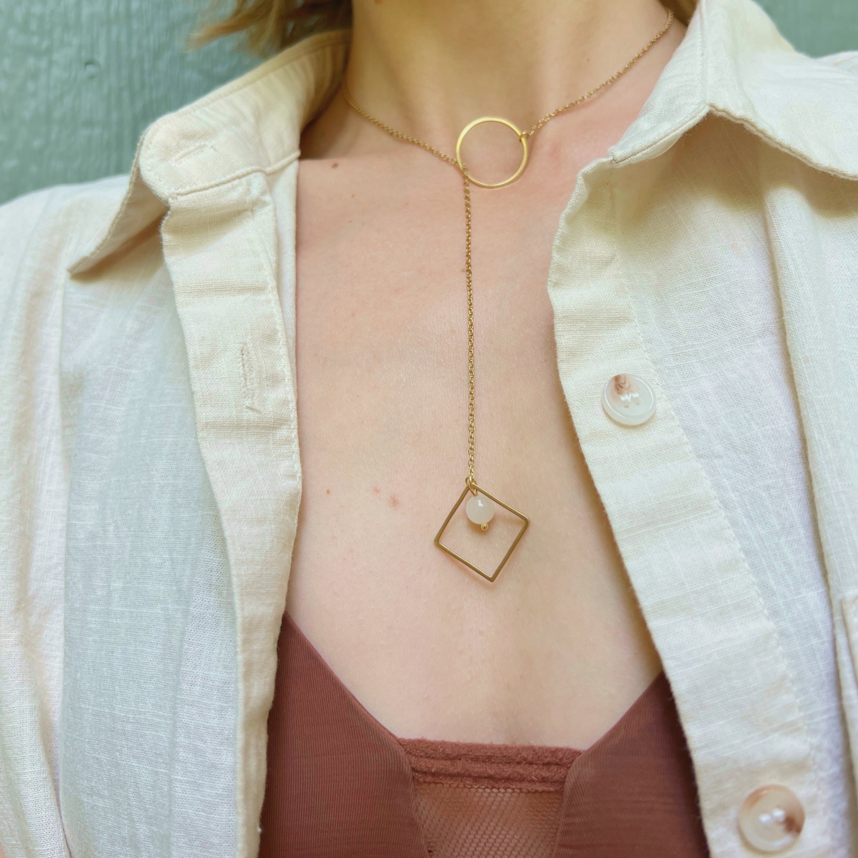 Lariat Necklace with O Ring and Gemstones / Discreet Day Collar - Submissive Jewelry