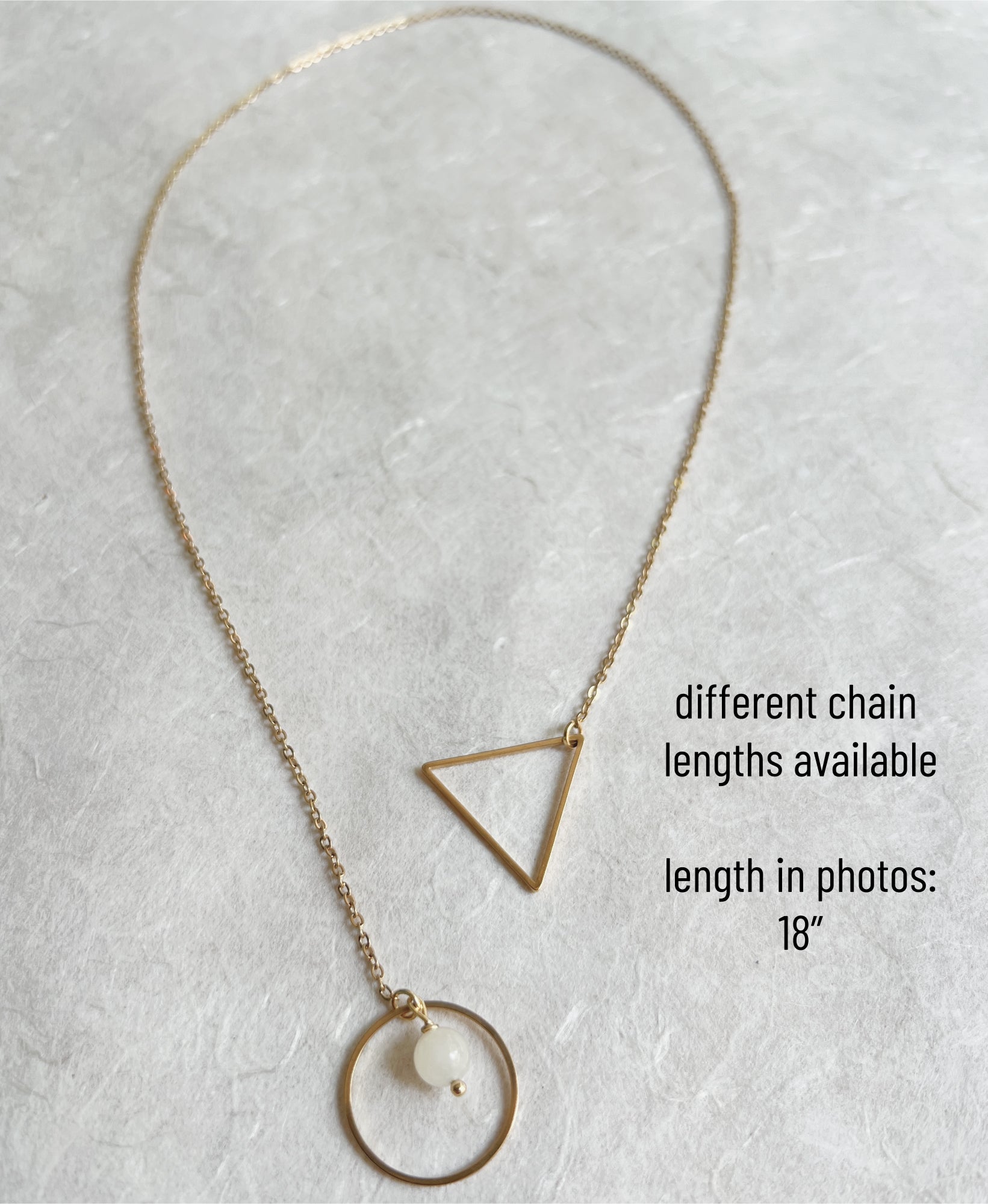 Comes in different lengths, from 14"-24". The model in the photo is wearing an 18" chain. Due to the nature of this necklace the length is not adjustable, but the style makes it suitable for different neck sizes.