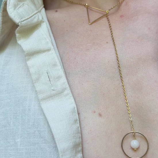 Lariat Necklace with O Ring & Triangle / Discreet Collar with Gemstones - Submissive Jewelry