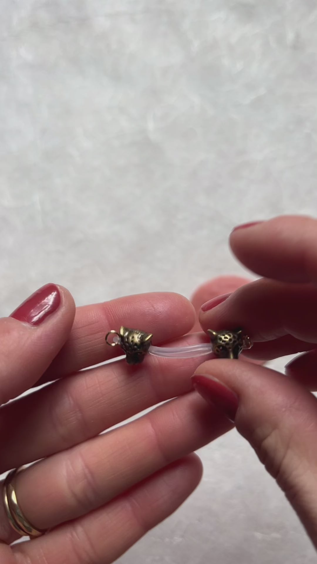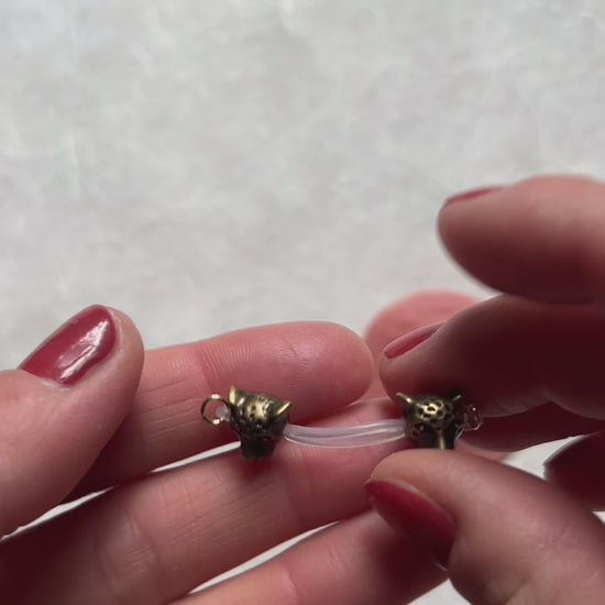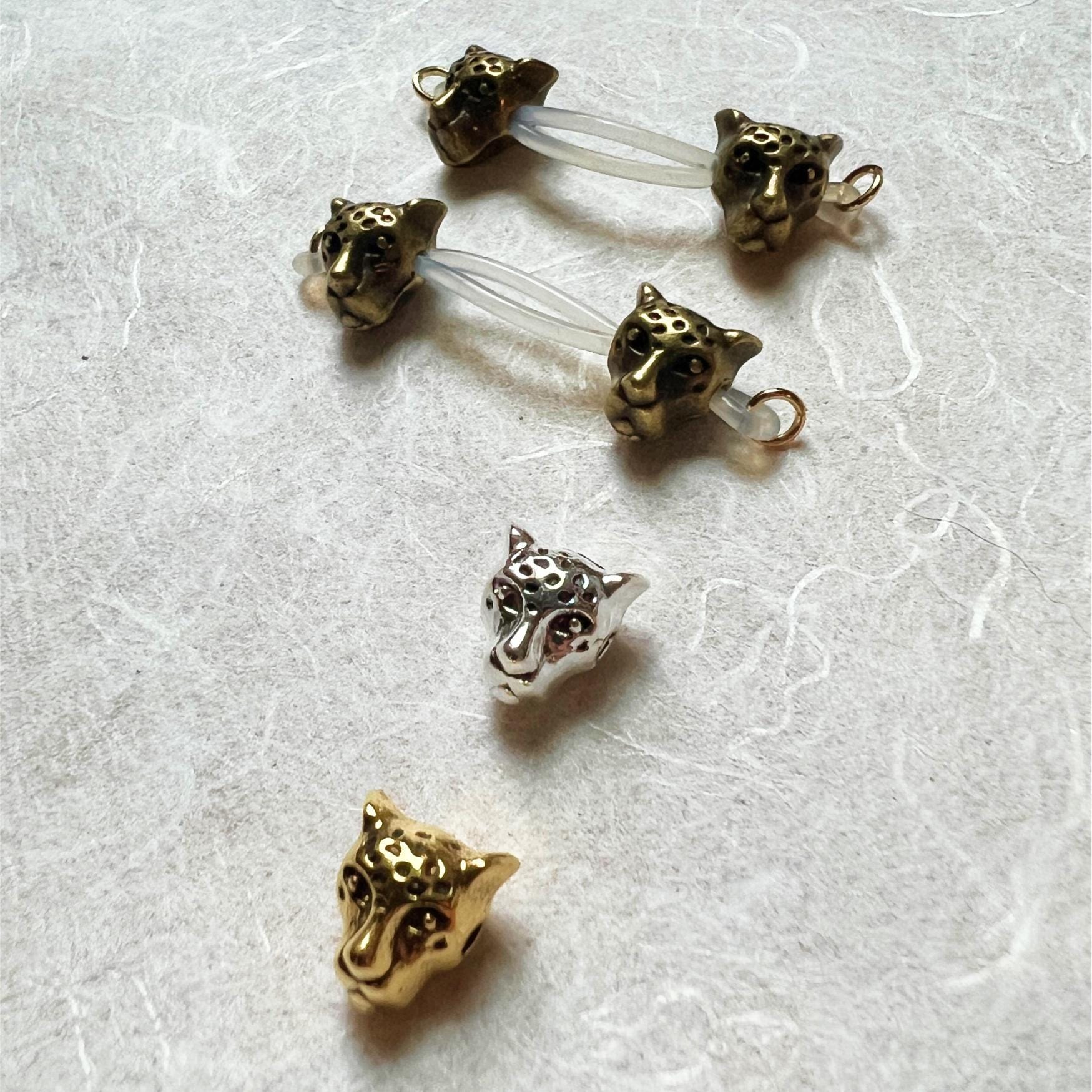 A pair of not so classic non piercing nipple jewelry with antique gold, shiny gold or silver finish. These leopard head beads are around 8-10mm big.