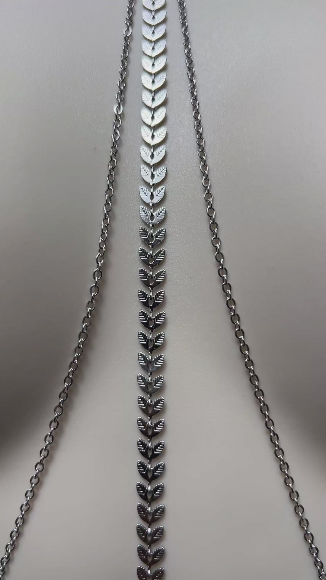 Handmade with care and high quality non-tarnish stainless steel chains and elements. Either pure stainless steel or with tarnish resistant PVD gold plating. This chain is fully waterproof. I have tested it myself, wearing it 24/7 for many weeks with no discoloration.