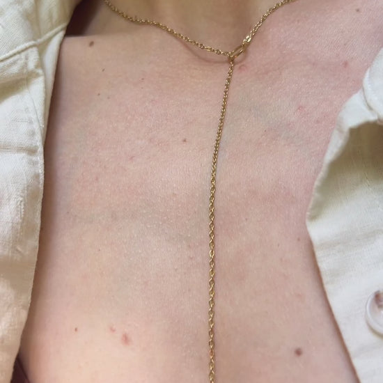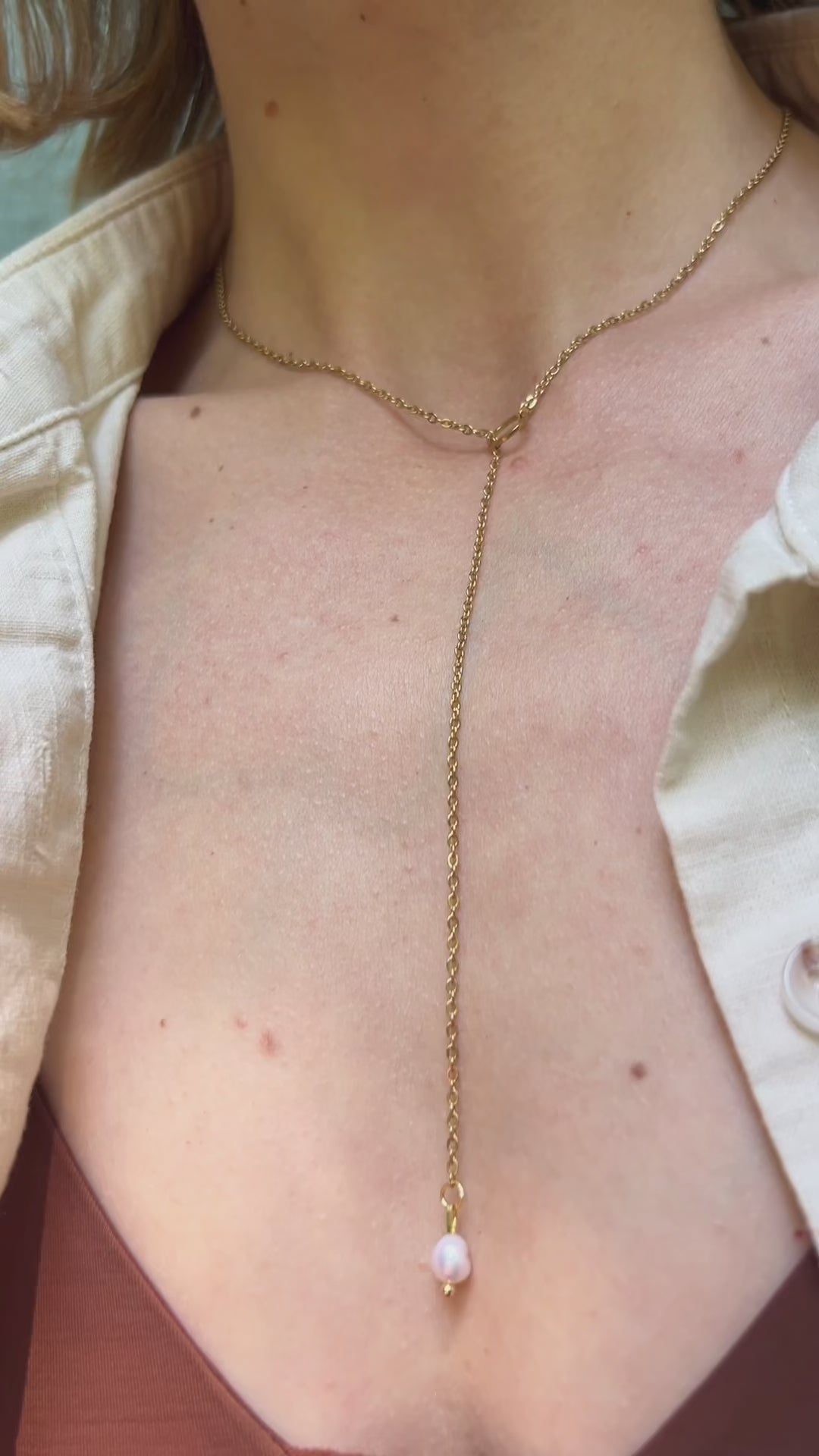 Minimalist Pearl Lariat Necklace / Discreet Day Collar / Y Necklace - Submissive Jewelry