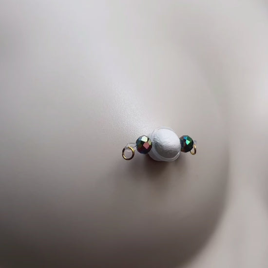 Get your new faux nipple piercing with the stunning peacock ore colors and celebrate the pierced aesthetic without the needle, and with full comfort.
