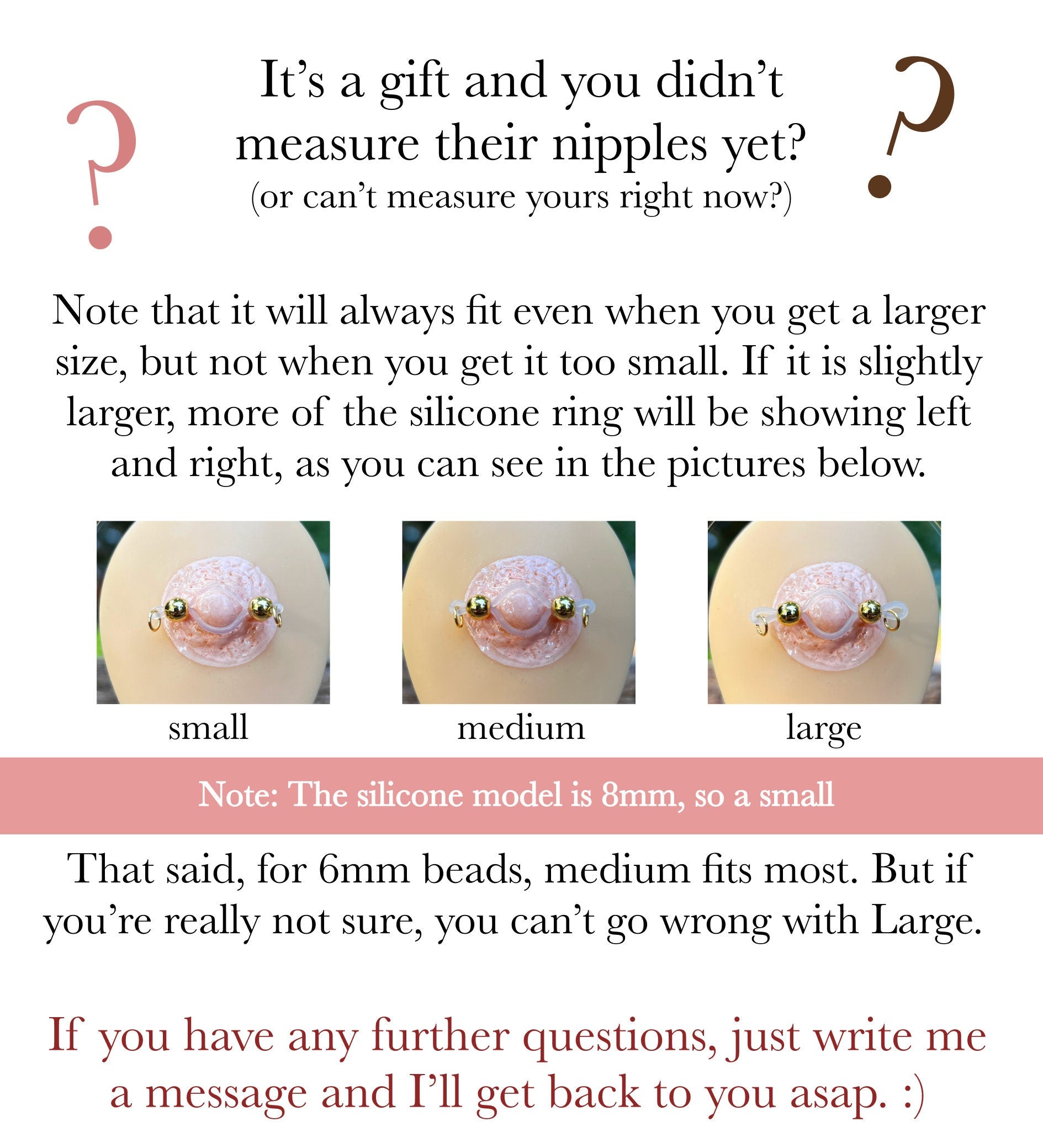 These barbell style fake nipple piercings look almost like the real deal without the commitment and the pain. So if you’ve been wanting nipple piercings but are not sure - try these. Or just to spice up your lingerie as part of your date night outfit. It’s some seriously unique body jewelry saved for that special someone only - or show it off as part of your rave outfit or for a kinky event. You do you. :)