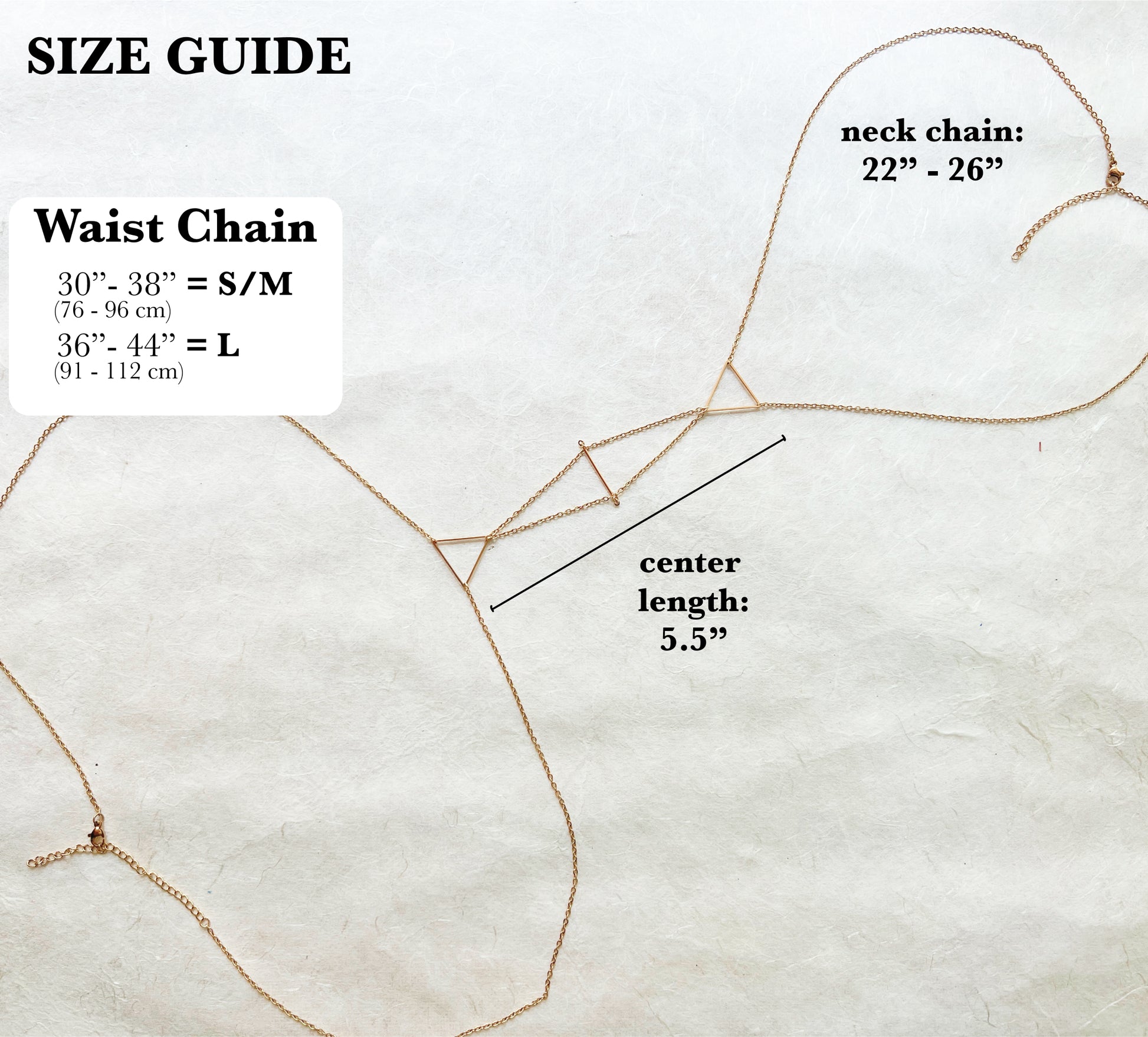 The waist chain comes in two lengths and sizes. Please measure your torso circumference before ordering.