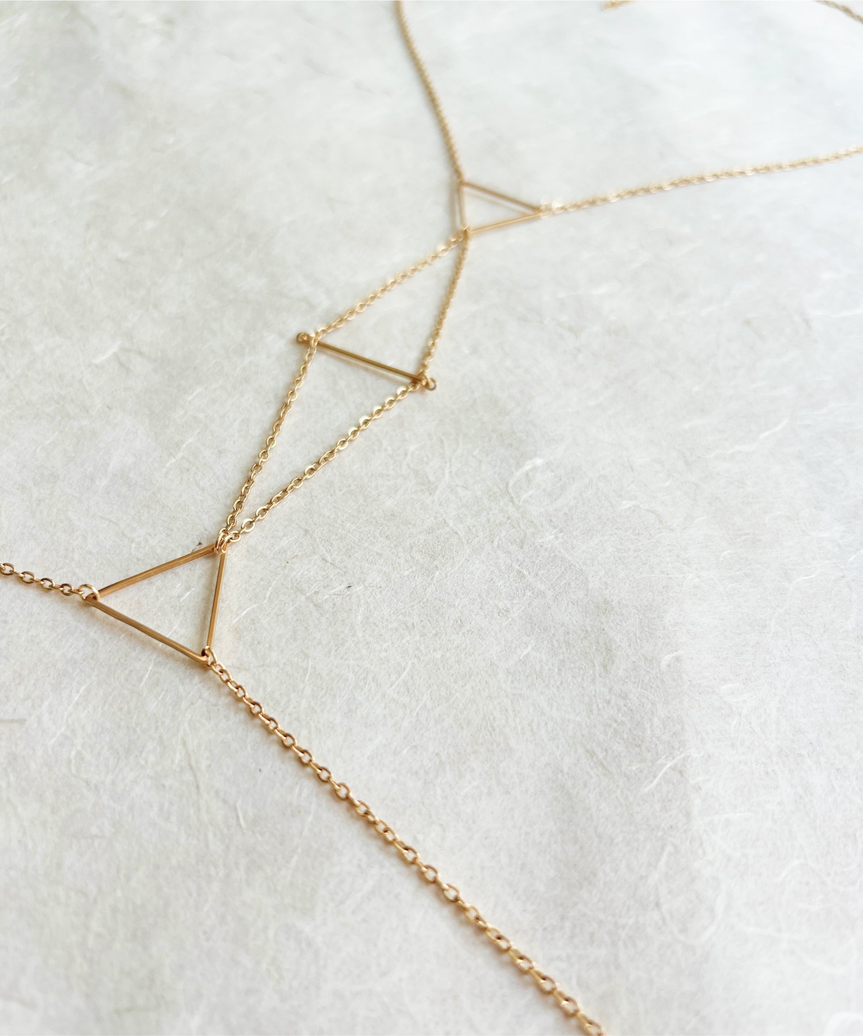 Beautiful and dainty chain bra featuring a unique triangle pattern made with stainless steel chain and charms. Available in gold plated or pure stainless steel, by Secretly Mine.