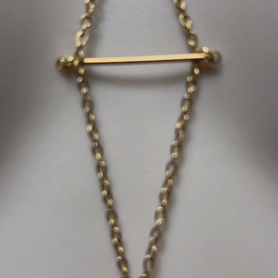 Handmade with care and high quality non-tarnish stainless steel chains and elements. Either pure stainless steel or with tarnish resistant PVD gold plating. This chain is fully waterproof. I have tested it myself, wearing it 24/7 for many weeks with no discoloration.
