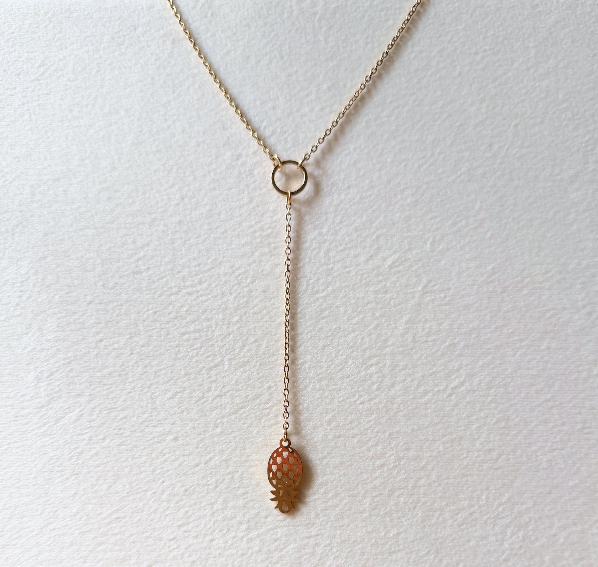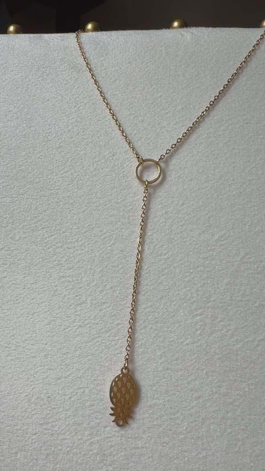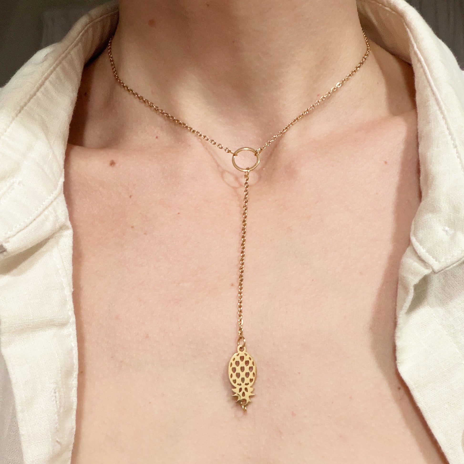 Unique lariat design with choker and o-ring featuring the iconic pineapple.